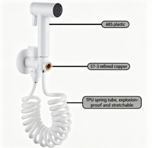 Valmistettu korkealaatuisesta, elintarviketurvallisesta ABS-hartsista, tämä bideesumutin on rakennettu kestämään. Se tarjoaa poikkeuksellisen iskunkestävyyden, korkeita lämpötiloja ja ruosteenkestävän suorituskyvyn, mikä takaa hygieenisen, pitkäikäisen ratkaisun kylpyhuoneellesi, ylittää huomattavasti halvat muovivaihtoehdot.