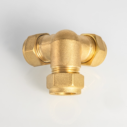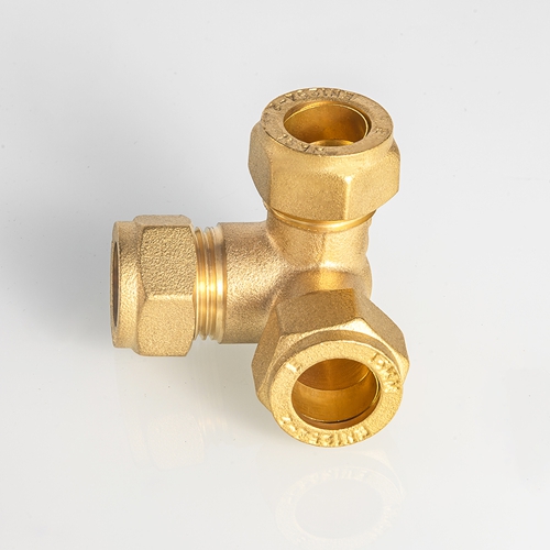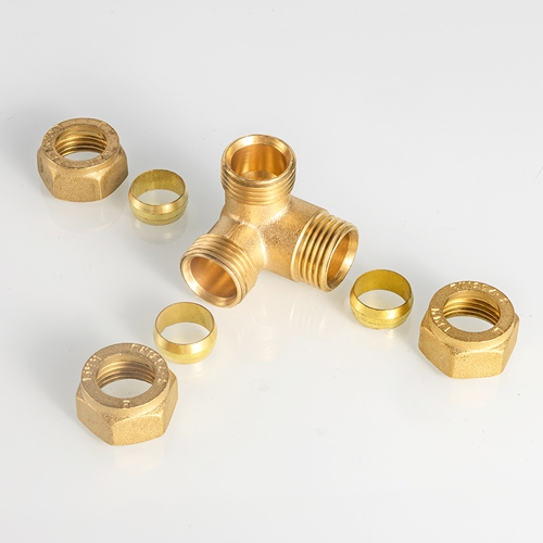 EN1254 Taottu messinki puristustaottu T-putkiliittimet messinkimateriaali ilma Compressio-putkien liitosliitos kupariputkelle