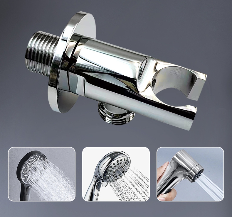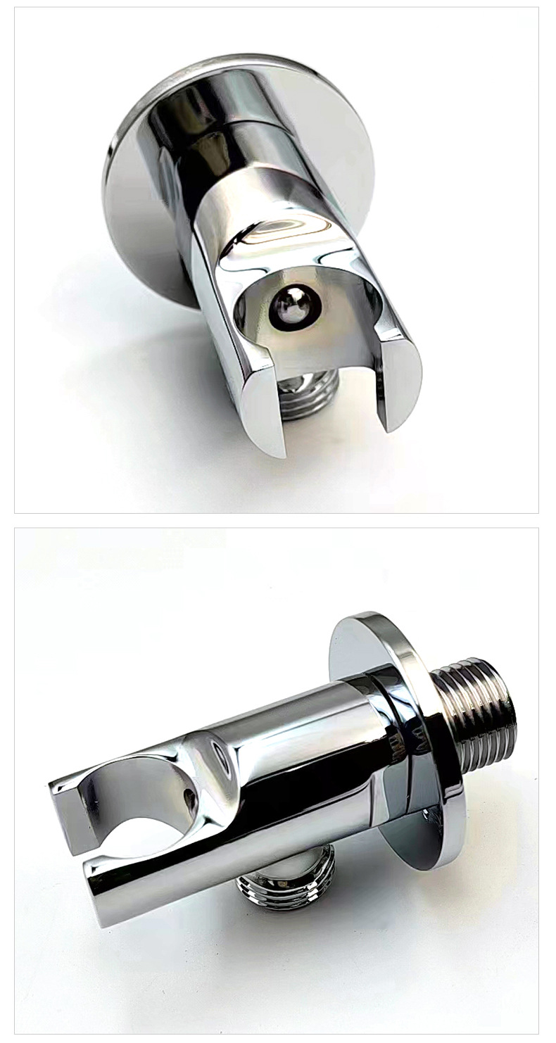 Sen ydintarkoituksena on tarjota tukeva, kestävä ja helposti asennettava seinään asennettava pohja kädessä pidettäville piilosuihkuille. Tuotteessa on erittäin puhdas kiinteä messinkirakenne: tärkeimmät voimaa kantavat ja liitososat, jotka ovat suorassa kosketuksessa seinään ja suihkuliitäntään, käyttävät ensiluokkaista messinkiä varmistaakseen pitkän aikavälin korroosionkestävyyden, ruosteenkestävyyden ja liitoksen tiiviyden; Tuotteen pinta on käsitelty kromipinnoitus- ja kiillotusprosesseilla, mikä osoittaa kirkkaan kromin ulkonäön, likaantumisenesto ja helppo puhdistaa. Se on suunniteltu vakiokierremäärityksellä ja esiasetetulla asennusrakenteella sopimaan yleisiin käsisuihkutarvikkeisiin, mikä yksinkertaistaa asennusprosessia ja varmistaa siistin ja kauniin asennusvaikutelman.